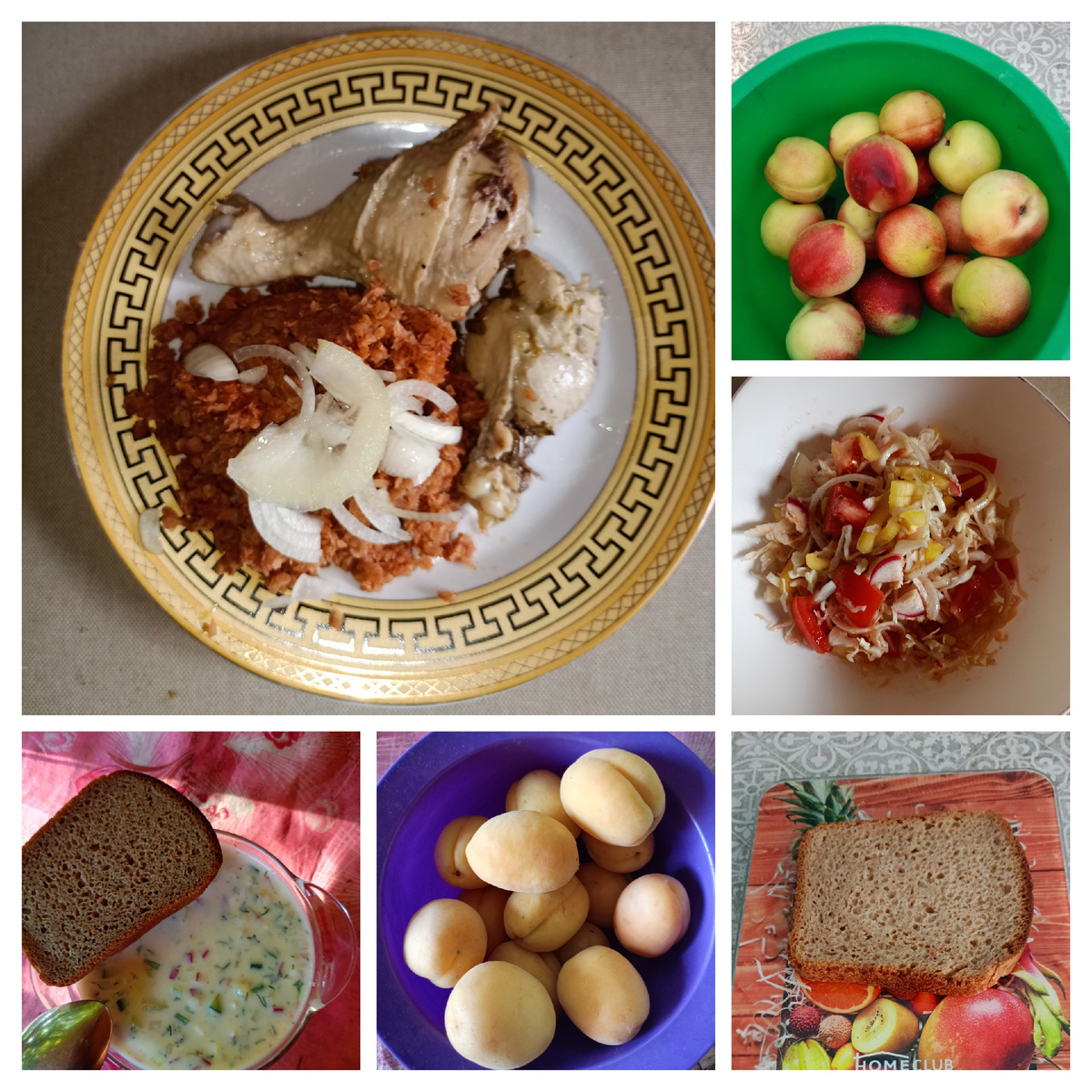 Вечером была окрошка без колбасы и мяса. Только картофель, огурцы, редис, яйца, укроп, чеснок и литр кефира 1%. И воды 0,5 л. С ржаным хлебом очеь вкусно. Съела почти 500 г, и готова была ещё столько же съесть, но остановила себя, как оказалось совершенно правильно. Даже того, что съела было многовато. В течение дня перекусывала нектаринами и абрикосами, и воду пила.