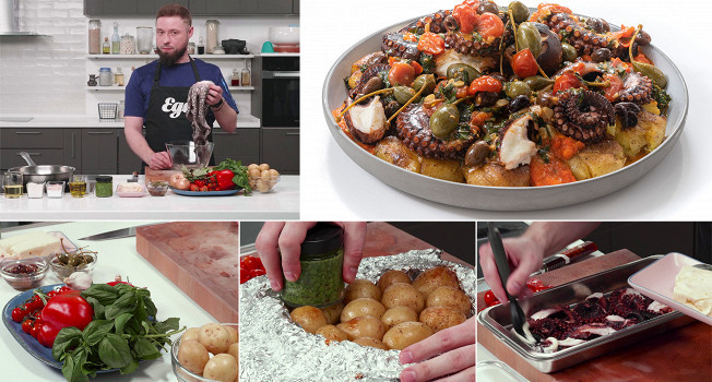 Как правильно и сколько варить осьминога, чтобы он был вкусным, и другие секреты приготовления этого морепродукта Осьминоги — самые известные головоногие моллюски (к таковым, например, относятся и кальмары). За свою эффектную внешность заслужили многочисленные упоминания в фольклоре: то в роли морских чудовищ, то наоборот — тут у кого какой опыт. Но с точки зрения гастрономии осьминог — это настоящее сокровище. Судите сами: восемь мясистых щупалец — это чистый белок, причем очень полезный. Осьминог в России скорее диковина, и оттого готовят его по большей части в ресторанах, но и в домашних условиях приготовить его можно очень легко и просто, из целого моллюска можно соорудить отличный и запоминающийся ужин для семьи и друзей. Как приготовить вкусного осьминога в домашних условиях? Очень просто, главное — не бояться и следовать нескольким простым правилам. Мы пригласили в нашу студию шеф-повара ресторана Atlantica Seafood Алексея Яшаева и сняли для вас этот подробный видео-мастер-класс