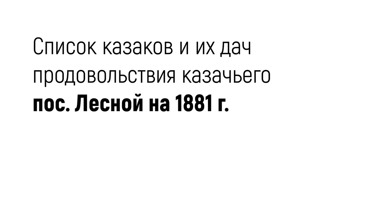 Ниже привожу список казаков и их продовольствия казачьего пос. Лесной на 1 января 1881 г. с указанием имен и фамилий глав казачьих семей и количество дач продовольствия, которое выделялось на каждую казачью семью (полдачи на ребенка). К примеру, Гаврилу Ваулину выдано 2 дачи - это паек в современном понимании, который подразумевает, что в семье казака имеется четверо малолетних детей до 14 лет, то есть 0.5 дачи на одного ребенка. 1. Гаврил Ваулин-2