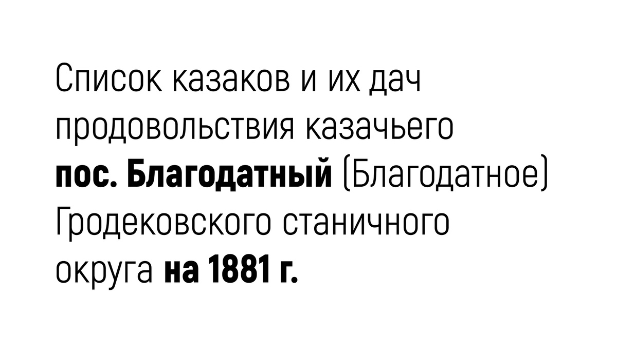К примеру, Степану Кутенкову выдано 1,5 дачи - это паек в современном понимании, который подразумевает, что в семье казака имеется трое малолетних детей до 14 лет, то есть 0.5 дачи на одного ребенка.