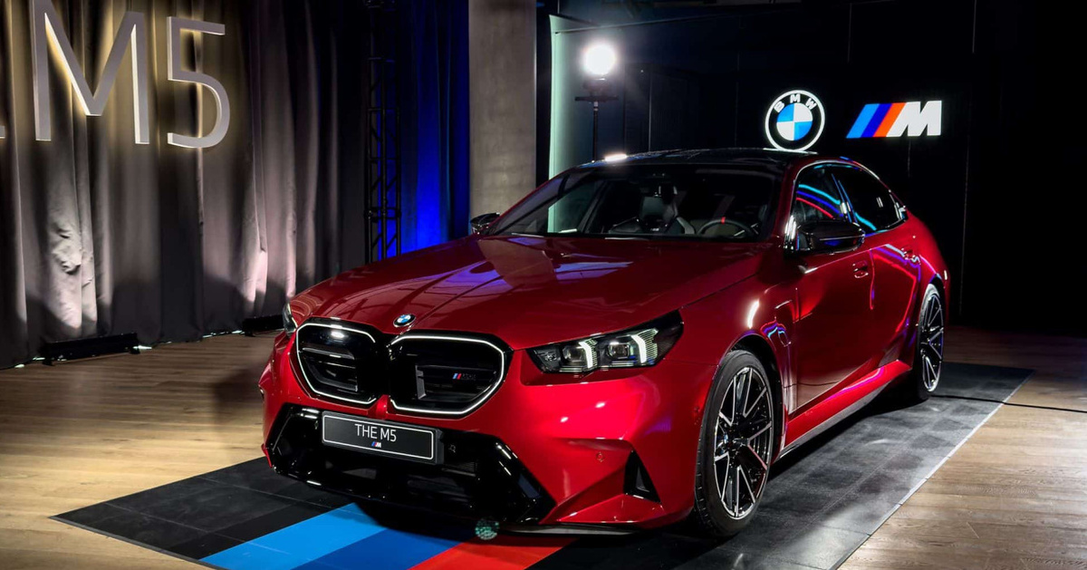 Огненно-красный BMW M5 2025 года с карбоновыми обновлениями