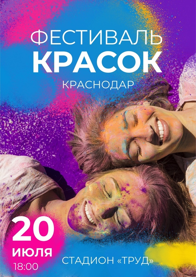 Привет, друзья! Лето 2024 года в Краснодаре обещает быть ярким и красочным, ведь 20 июля в нашем городе пройдет грандиозный Фестиваль Красок. Это событие, которое нельзя пропустить! Где и когда? Фестиваль Красок пройдет 20 июля 2024 года на Стадионе "Труд" с 18:00. Не пропустите! Фестиваль Красок — это отличная возможность весело провести летний вечер в кругу друзей и семьи, наслаждаясь музыкой, яркими красками и позитивной атмосферой. Подписывайтесь на наш канал, чтобы быть в курсе всех событий и новостей Краснодара. Оставайтесь на волне с нами!