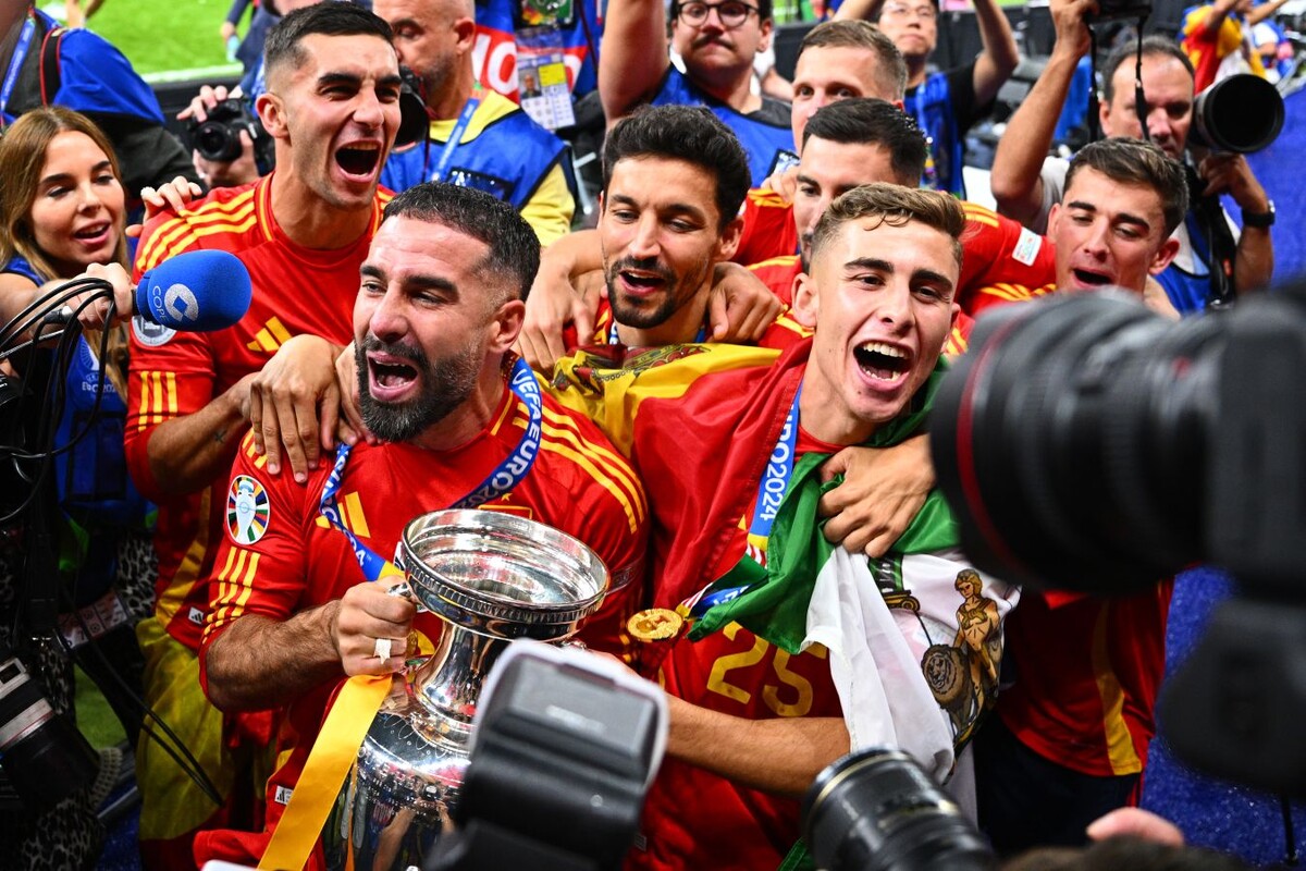 Чемпионат Европы закончен. Сборная Испании — заслуженный триумфатор турнира. Нам же остаётся выбрать символическую сборную турнира. Главный герой всего группового этапа чемпионата Европы, рекордсмен турнира по сейвам в одном матче — 11. Вратарь «Валенсии» стал тем, кто скрывал все беды довольно дырявой защиты сборной Грузии и вытащил ее в плей-офф. Идеальный перформанс. Жаль, что не хватило на плей-офф. Карвахаля многие не любят за то, что он ведёт себя на поле, как последняя сволочь, но защитник он прекрасный. И на этом Евро доказал это в очередной раз. В том числе в финале. Франция не оказалась в финале, но до полуфинала она дошла за счет прекрасной игры защиты, и Салиба был главным в этой обороне. Лучший защитник «Арсенала» показал себя и в сборной. Здесь лишних комментариев не надо. Сумасшедший дед из Португалии и в 41 год был невероятно хорош. Это надо отметить. Марк Кукурелья — гений этого турнира. Защитник «Челси» провел идеальный чемпионат. А завершил всё это невероятным голев