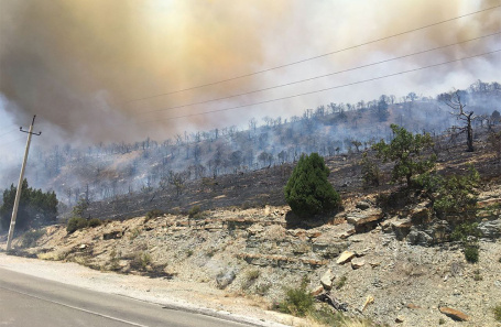В районе Абрау-Дюрсо под Анапой из-за лесных пожаров был эвакуирован туристический курорт.