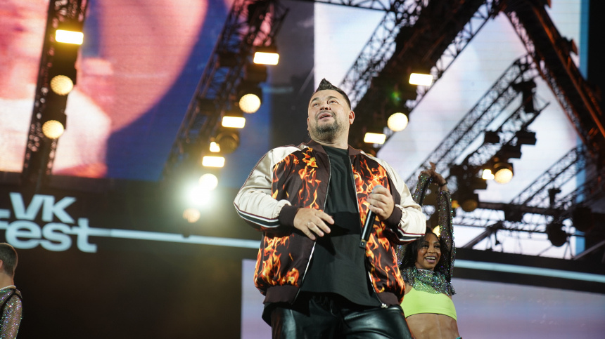 Солист группы «Руки Вверх!» вот уже более 25 лет радует фанатов своими хитами и умопомрачительной энергией на концертах. Фото: ИЗВЕСТИЯ; 5-tv.ru Солист группы «Руки Вверх!» Сергей Жуков во время выступления на VK Fest устроил масштабный флешмоб. Он попросил поклонников вместе с ним сделать «самое дурацкое движение, которое было популярно в 90-е годы». Эксклюзивные кадры с мероприятия оказались в распоряжении 5-tv.ru. «Не бойтесь, не стесняйтесь, все поднимайте правую руку, все-все, охрана, артисты. Это будет самое красивое зрелище потом. Мы будем пересматривать. Сейчас будем повторять самое дурацкое движение 90-х годов. Правая рука вверх», — сказал со сцены артист. Поднял руку и стал медленно ее опускать, делая волнообразные движения. Публика повторяла за ним. Разогрев и раззадорив зрителей, артист исполнил свой хит «Чужие губы». К слову, «Руки Вверх!» уже более 25 лет радуют публику своими композициями. Изначально в группе пели двое — Сергей Жуков и Алексей Потехин, однако в 2006-м он