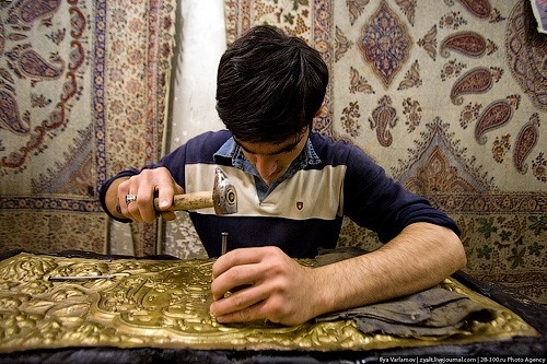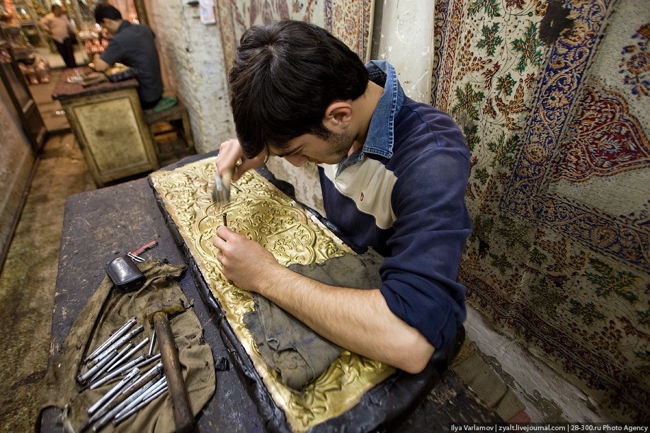 18+ НАСТОЯЩИЙ МАТЕРИАЛ (ИНФОРМАЦИЯ) ПРОИЗВЕДЁН, РАСПРОСТРАНЁН И (ИЛИ) НАПРАВЛЕН ИНОСТРАННЫМ АГЕНТОМ ВАРЛАМОВЫМ ИЛЬЕЙ АЛЕКСАНДРОВИЧЕМ ЛИБО КАСАЕТСЯ ДЕЯТЕЛЬНОСТИ ИНОСТРАННОГО АГЕНТА ВАРЛАМОВА ИЛЬИ АЛЕКСАНДРОВИЧА В продолжении поста про посуду, сегодня выкладываю несколько фотографий про чеканку. В Иране техника чеканки применяется при создании посуды, декоративных панно, различных ювелирных украшений, все это очень популярно у туристов. Как и большинство сувенирной продукции, чеканные изделия изготавливают прямо около сувенирных лавок, так что можно наблюдать за работой мастера. Рельеф на листовом металле создают с помощью специально изготовленых инструментов — чеканов и выколоточных молотков, которые изготовляют как из металла так и древисины Рельеф или рисунок можно чеканить, положив лист металла на торец березового или липового кряжа, на войлок, толстую резину, брезентовый мешок с речным песком, слой пластилина или смолы в некоторых случаях более удобна свинцовая плита. Для чеканных р