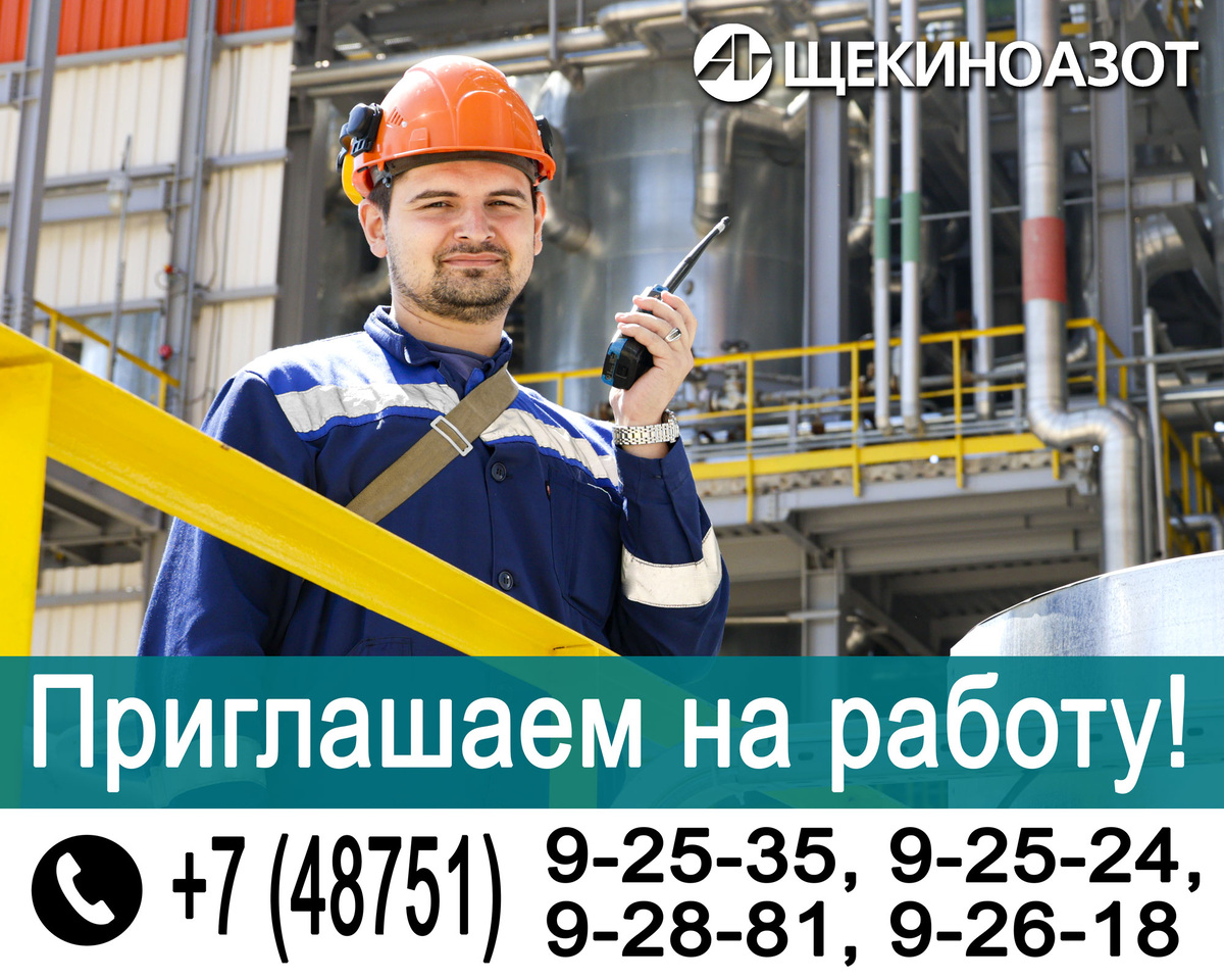 Приглашаем на работу! Требуется технологический персонал: аппаратчики, операторы ДПУ, машинисты компрессорных установок, машинисты котлов. Вакансии железнодорожной сферы: машинисты тепловоза, помощники машинистов тепловоза, составители поездов, дежурные стрелочного поста, слесари по ремонту подвижного состава. А также: лаборанты химического анализа, слесари-ремонтники, слесари по КИПиА, электромонтеры. График работы – сменный (по 12 часов) или дневной. Осуществляется доставка персонала на завод автотранспортом предприятия из г. Щекино, р.п. Первомайский, г.Тула – бесплатно для работников компании. Присоединяйтесь к команде компании «Щекиноазот»! Все актуальные вакансии – здесь http://n-azot.ru/vacancy.php. По вопросам трудоустройства обращайтесь в кадровую службу. 📞 Контактные телефоны: +7 (48751) 9-25-35, 9-25-24, 9-28-81, 9-26-18.