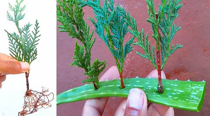 Размножить тую или кипарис легче, чем кажется. Для этого вам понадобится только алоэ, огородная земля и немного терпения. Всё остальное природа сделает за вас! В небольшой горшок для черенков насыпать землю, вставить небольшой кусочек алоэ, обрезанный с обеих концов. Засыпать землёй. В алоэ вставить черенок туи или кипариса. Обильно пролить водой. Из пластиковой бутылки сделать мини-тепличку. Каждый день открывать крышку ненадолго и проветривать. Поддерживать влажную почву. Примерно через 50 дней черенок хорошо укоренится, и его можно будет пересадить в горшок большего размера.