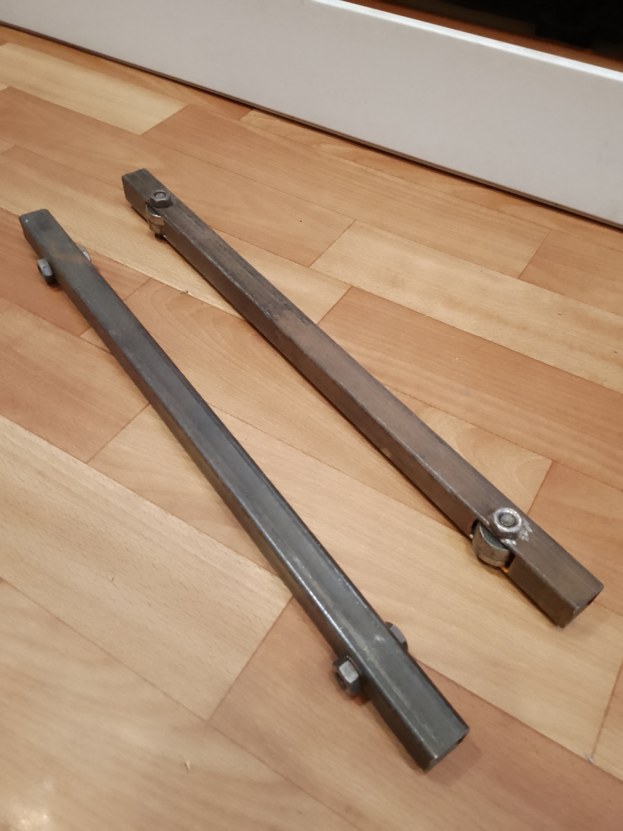 Если стиральная машина находится в кухонном гарнитуре (замкнутое пространство), то возникает трудность с установкой еë туда и выдвижением еë оттуда! Она тяжелая, поверхности гарнитура расположены близко к машинке (небольшие зазоры), резиновые ножки "тормозят" процесс. Для облегчения этой задачи я изготовлял "лыжи": Материалы: профильная труба 20 Х 20 Х 400, подшипники 60018 (пригодились от старого скейтборда сына), болты и гайки М8. Собрав " лыжи" как на фото, процесс извлечения стиралки из гарнитура очень облегчился. Гвоздодером приподнимаю машинку с одной стороны, подкладываю под машину одну лыжу подшипниками к полу, опускаю на "лыжу" машинку. Повторяю тоже самое с другой стороны. Готово. Машина выкатывается и закатывается в нишу гарнитура практически одной рукой!
