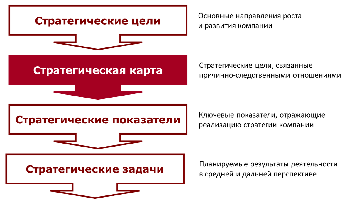 Мы продолжаем изучать профессиональную технологию целевого управления KPI-Pro и, в частности, методику целеполагания в организации. Ранее мы с вами обсудили, как сформулировать стратегические цели компании. Следующий шаг – построение стратегической карты. Проще говоря, это «дерево целей» вашей организации. Дело в том, что цели, формируемые по разным перспективам (финансы, рынок, процессы, развитие), как и все в этом мире, связаны между собой причинно-следственными отношениями. Достижение целей «верхних» уровней зависит от достижения целей «нижних» уровней. Именно эти логические связи и должны быть отражены в стратегической карте. Зачем это нужно? Почему недостаточно просто перечислить наиболее важные цели? Во-первых, взаимосвязи между целями по меньшей мере полезно понимать хотя бы из простого любопытства. Во-вторых, что более важно для практики, при построении стратегической карты происходит т.н. балансировка целей: мы избавляемся от малозначащих целей и добавляем при необходимости но