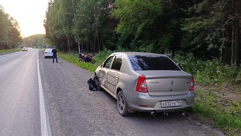 Авария произошла вечером 14 июля на 2-м км автодороги «Северный подъезд к г. Нижний Тагил». По предварительным данным Госавтоинспекции, 50-летний водитель Renault Logan, двигаясь в сторону города, при обгоне столкнулся с попутным мотоциклом Racer, которым управлял 27-летний мужчина. В аварии пострадали водитель байка и его 32-летний пассажир, после оказания медицинской помощи их отпустили домой. Водитель легковушки оказался пьян: прибор показал 0,763 мг/л в выдыхаемом воздухе. «По факту ДТП водитель автомобиля пояснил, что ехал в транспортном потоке, автомобиль спереди включил указатель правого поворота, мужчина решил его объехать. В этот момент почувствовал удар в свое транспортное средство слева», — рассказали в отделе пропаганды. В отношении виновника составили материалы за управление транспортным средством в состоянии опьянения, выезд на полосу встречного движения, уезд с места ДТП, неиспользование ремня безопасности и установку зимней резины. Водитель мотоцикла имеет стаж вождения