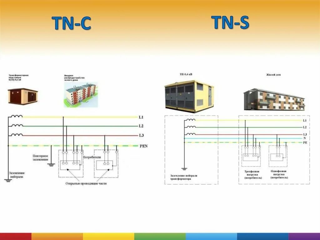 - 2 провода, однофазный ввод - приходят фазный (L) и совмещенный в одном нулевой рабочий + нулевой защитный проводники, вместе обозначается как PEN (PE+N). Нужно проверить, соединена ли шина заземления щита (ГЗШ - главная заземляющая шина) с нулевой шиной щита перемычкой. Если соединена, то ваша система заземления TN-C-S. Если не соединена и имеется собственный контур заземления или штыревой заземлитель завденный на ГЗШ - Ваша система – TT. Если не выполнено расщепление нулевого PEN-проводника на отдельные PE- и N-проводники и он остаётся совмещенным, то у вас система - TN-C.