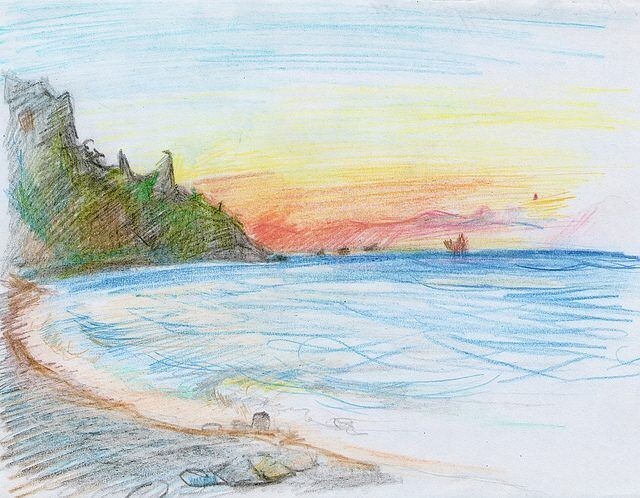 - Подъезжаем, ребёнок, смотри в оба, будет тебе сейчас море. – обнадёжил отец. Олька открыла глаза так широко, как только могла, и прильнула к закрытой форточке, лёжа на своей второй полке. И наконец она его увидела! Редкие прибрежные фонари раскидывали слабые блики на тёмную, почти невидимую в ночи воду. Большая ли была та вода, Олька так и не поняла, но она – эта вода – взяла и закончилась, как и те, про которые папа сказал: «Нет, это ещё не море». А поезд всё ехал, оставив море позади.