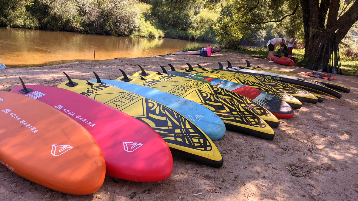 Последние пару сезонов стал набирать популярность такой вид активного отдыха как катание на сапах. И в один из солнечных июльских дней наша дружная компания уже мчалась навстречу этому приключению. САП (SUP, сапборд) - это доска, на которой можно плавать сидя, на коленях, но, в основном, стоя. Движение регулируется при помощи весла. Существует 2 типа SUP-досок - жёсткие и надувные. Рекламу этой экскурсии нашли на просторах интернета. Это была прогулка по реке Истра, рассчитанная на 4 часа. В мессенджере мы получили все инструкции и в воскресенье, в 9 утра приехали на станцию метро "Улица 1905 года", где нас уже ждал автобус. Некоторые ехали на личном транспорте. Для них была отдельная инструкция с обозначением места для стоянки. Около 10 часов нас высадили на пляже, дали время, чтобы переодеться, намазаться солнцезащитным кремом, посетить туалет. Затем каждому выдали весло, гермомешок для личных вещей, бутылку питьевой воды и яблоко. Провели подробный инструктаж: как правильно держать