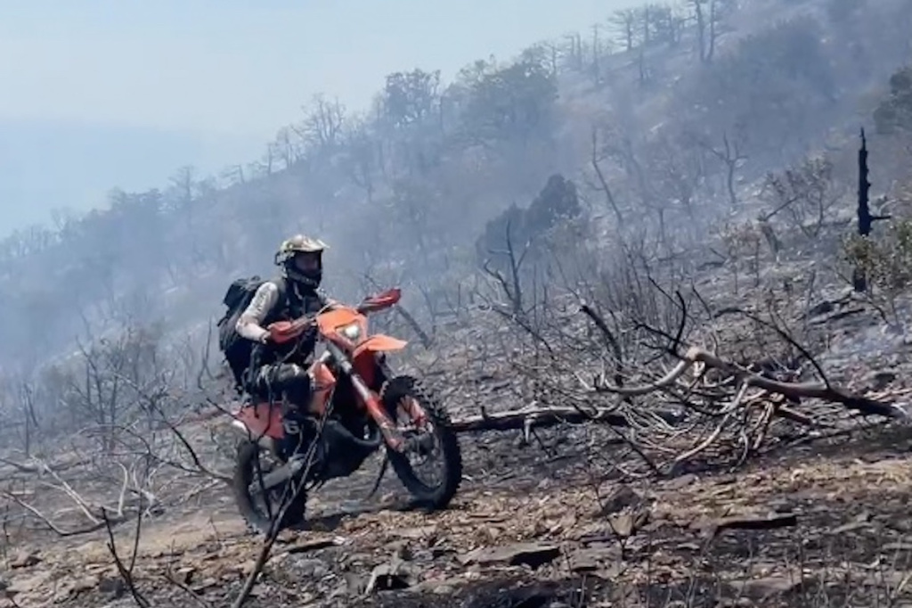 Мотоциклисты второй день помогают в тушении масштабного пожара в урочище Сухая Щель под Новороссийском. Накануне воду в горы доставляли на 12 мотоциклах, сегодня в деле около 20. Среди тех, кто помогает пожарным, — чемпион России по эндуро Алексей Соколов.