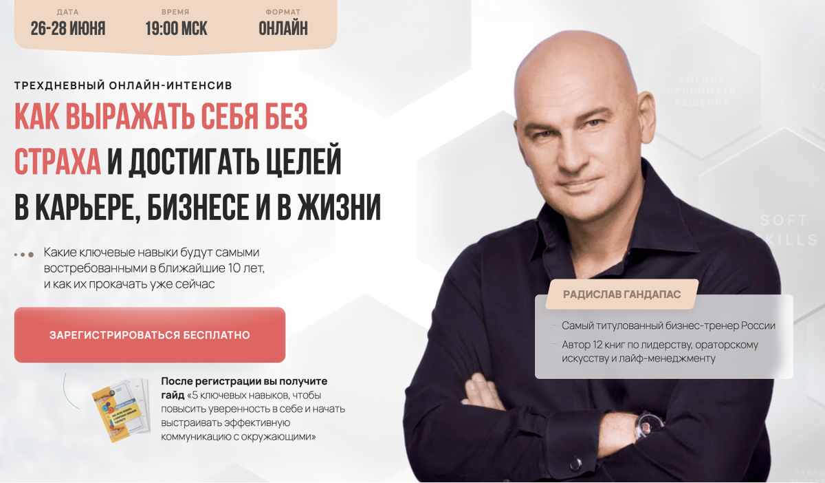 К нам в агентство www.RA-Pisatevskogo.ru обратился директор по маркетингу одного из ТОП'овых спикеров РФ и СНГ Радислава Гандапаса с просьбой запустить Яндекс Директ на автоворонку по обучению уверенности в себе через: