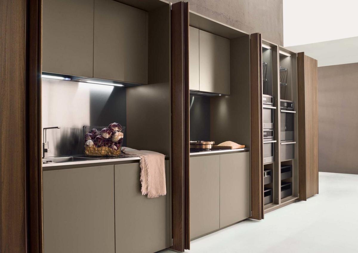 Сейчас достаточно часто в проектах встречается непреодолимое желание дизайнеров закрыть кухню сплошным фасадом