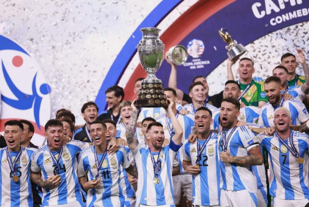Сегодня, 15 июля, сборная Аргентины обыграла сборную Колумбии в финале и выиграла Кубок Америки – 2024. Встреча на стадионе «Хард Рок» в Майами завершилась со счётом 1:0 (ДВ). Таким образом, Аргентина выиграла Кубок Америки второй раз подряд. В 2021 году небесно-голубые обыграли в финале Бразилию со счётом 1:0. Аргентина выиграла свою группу А с максимальным количеством очков (9). В квартете также были Канада (4 очка), Чили (2 очка) и Перу (1 очко). В плей-офф аргентинцы на своём пути обыграли Эквадор (1:1, 4:2 пен.) и Канаду (2:0). Для капитана сборной Аргентины Лионеля Месси этот трофей стал четвёртым с национальной командой. В 2021 году был выигран Кубок Америки, в 2022 году — чемпионат мира в Катаре и Финалиссима. Также отметим, что на счету Месси победа в составе олимпийской сборной своей страны на летней Олимпиаде в 2008 году. По ходу сегодняшнего матча Месси был заменён в середине второго тайма. Лионель получил травму и не смог продолжить встречу. статья о травме месси: Напомним
