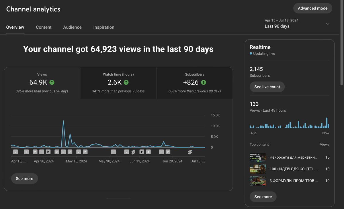 - Анализ конкурентов с помощью ИИ. Это позволило понять, какие темы и форматы работают лучше всего.