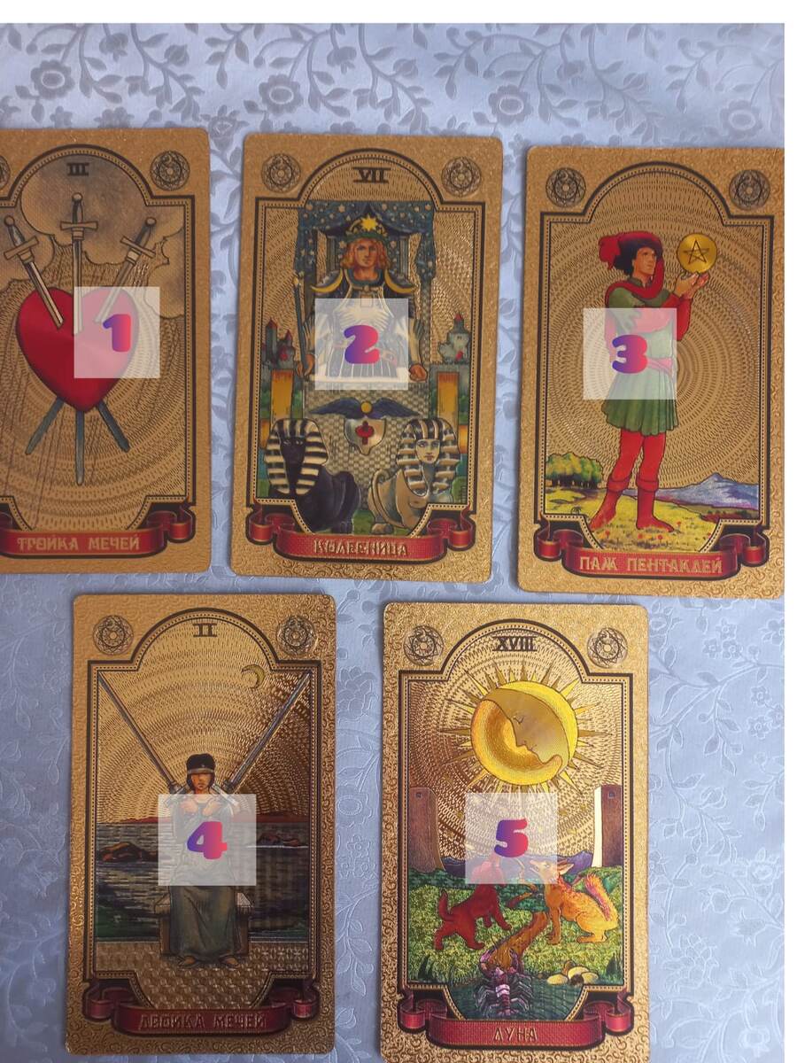 1. ТРОЙКА МЕЧЕЙ. Карта ничем не прикрытой реальности, когда Вы вдруг все увидели в истинном свете, как есть на самом деле. Не очень приятная карта, которая предрекает разрыв, скандал, выяснение отношений, дурные вести или переживания за больного человека. Как следствие, на этой неделе Вы можете впасть в депрессию. Договориться с кем-либо будет очень трудно, так как оппоненты будут высказывать свое мнение и не желание идти на компромисс. Мало того,могут найтись люди, которые явно будут пытаться Вам "насолить". Так же это карта сильного стресса или какой-то тяжелой ситуации. Может быть больно и неприятно до слез. У Вас может измениться мнение о человеке на противоположное - от любви до ненависти. Могут складываться ситуации, от которых и за которые "болит сердце", причем не только в переносном, но и в прямом смысле. Или же просто на этой неделе Вы можете услышать много неприятных новостей,которые Вас лично не касаются, но Вы примите их близко с сердцу и у Вас испортится настроение. В лю