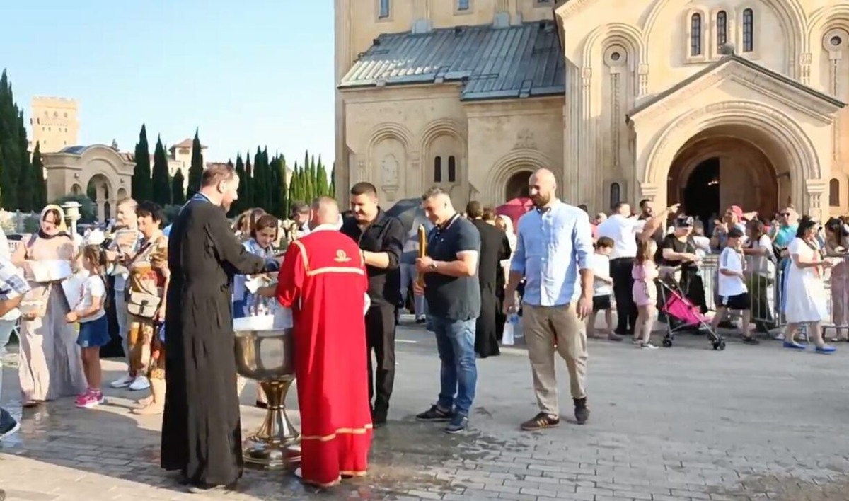 Массовое крещение детей состоялось перед кафедральным собором Святой Троицы в Тбилиси