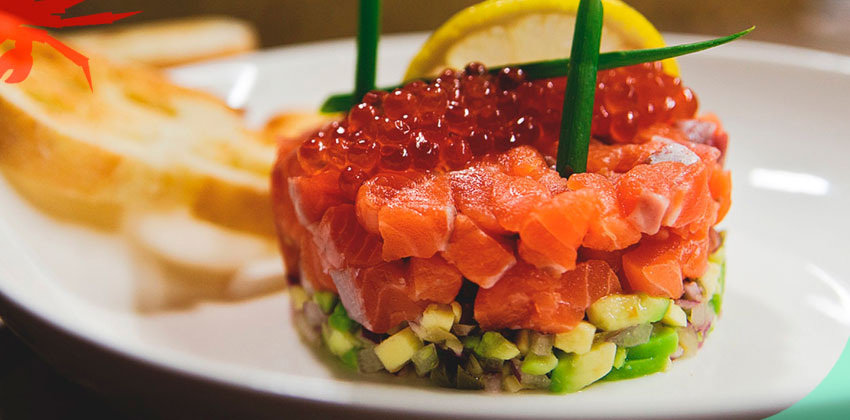 Ингредиенты: Лук очищаем от шелухи и мелко нарезаем. Авокадо разрезаем, удаляем косточку и также мелко нарезаем. Также нарезаем рыбу - небольшими кусочками. Берем миску, смешиваем авокадо с луком, лимонным соком и измельчёнными каперсами, хорошо перемешиваем. Затем начинаем выкладывать слоями: сначала авокадо с луком и каперсами, а затем рыбу. Сверху выкладываем красную икру. Ломтики хлеба подрумяниваем на сухой сковороде или в тостере. В небольшой миске хорошо взбиваем соевый соус и оливковое масло, добавив чёрный перец. Подаем тартар непосредственно после приготовления с гренками, сбрызгивая соусом. Блюдо готово. Приятного аппетита! Источник: https://wildcrab.ru/news?id=2466
