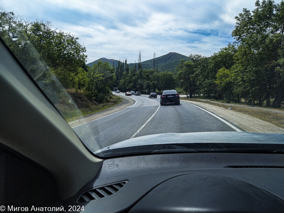 Ездили в Судак. Точнее через Судак и потом ещё 15 км в сторону Алушты, в село Морское. Там отличный дикий пляж и чистая вода. Ну про пляж я расскажу отдельно, а сегодня про свои впечатления от дороги. Поехали от нашего Старого Крыма через Грушевку. Ещё можно через Коктебель, но там дольше и длинше. Заранее извиняюсь, если кого-то покоробит моё просторечное употребление слова "длиннее". Я однажды по простоте душевной написал в заголовке "чорт", так там потом такая буча поднялась среди блюстителей чистоты великого и могучего... Дорога хорошая, асфальт ровный, разметка чёткая. Одна беда - дорога узкая, везде только две полосы и сплошная разделительная линия. Всего один-два раза встретилась прерывистая, где можно было обогнать, да и то там ремонтные работы были и ограничение скорости. Так что как пристроились мы в колонну машин у села Переваловка, так и пилили до Судака со скоростью 50-60 км/час, ни разу никого не обогнав. Хотя нас пару раз обгоняли какие-то лихачи, игнорирующие и сплошну