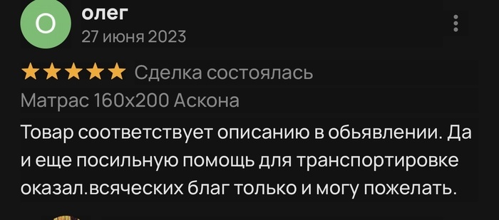 По итогу, и выпереть матрас из дому деду помог, и в его пробокс запихнуть, и рукой помахать, на дорожку) В принципе, не перетрудился) Зато плюс в карму и еще один положительный отзыв в копилку)