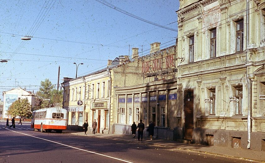 Бубликом сейчас называется просто хлеб колечком. Пропало настоящее бубличное тесто – крутое, вязкое и чуть сладковатое. Бублики были двух сортов. Прекрасные шестикопеечные бублики с маком продавались везде. Но мало кто знал, что есть на свете чистые, без мака, свежие и горячие, с тончайшей, нежно хрустящей, чуть подрумяненной корочкой – бублики за пять копеек. Да и откуда людям было знать про эти упоительные бублики, если они продавались едва ли не в единственном месте – как раз рядом с нашим домом. На углу Садовой-Каретной и улицы Чехова (то есть Малой Дмитровки), там, где сейчас стоит огромный дом с магазинами и офисами – был деревянный павильон. Вход с улицы Чехова. Там стояли автоматы с соками, и еще продавались молочные коктейли – недорогая услада 1960-х. Сбоку, слева от входной двери, было окошко на улицу. Там стояла бубличная машина! Был виден вертящийся стальной круг с веретеном посредине. Туда из кастрюли падало тесто и превращалось в бублики, которые тут же въезжали в печку,