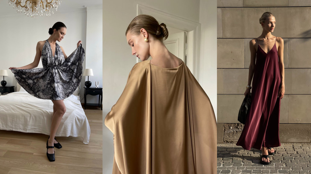 Не бойтесь экспериментировать с цветами. Глубокие оттенки, такие как бордовый, изумрудный или темно-синий, всегда выглядят роскошно. Фасон должен подчеркивать достоинства фигуры. Популярные варианты – платья с открытой спиной, разрезами или асимметричным кроем. Двустороннее платье в цвете "вишня" с одной стороны и бежевое с другой на тонких бретелях имеет свободный трапециевидный силуэт и идеально подойдет не только для вечерних мероприятий, но и для повседневных образов.