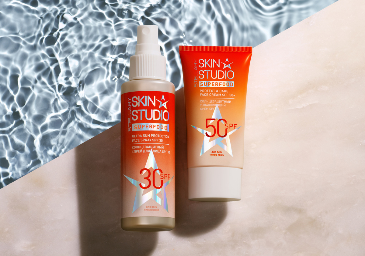 Сохранить кожу сияющей и увлажненной летом — задача со звездочкой. Но SPF-дуэт от Stellary Skin Studio поможет с ней справиться. Секрет роскошного образа и уверенности в себе — безупречная кожа. Чтобы она оставалась такой даже в жаркий сезон, добавьте в ежедневный бьюти-уход защиту от ультрафиолетовых лучей и увлажнение. Двойной эффект обеспечат средства от Stellary Skin Studio — спрей SPF 30 и крем SPF 50+ из серии Superfood. Они подходят для всех типов кожи, включая жирную и комбинированную. ✔️ Крем SPF 50+ станет отличной базой под макияж. Он приятно ощущается на коже и не создает липкого эффекта. Формула с гиалуроновой кислотой, аргинином, витамином E и аллантоином предохраняет от фотостарения, пигментации и обезвоживания, а четыре SPF-фильтра в составе надежно защищают от агрессивного солнца. ✔️ Спрей SPF 30 — удобное средство для обновления защиты в течение дня. Его можно использовать поверх макияжа: спрей обладает легкой текстурой, мгновенно впитывается и не оставляет следов.