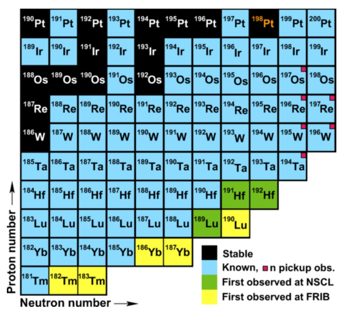 (Результаты: вещество. «ХиЖ» 2024 №6) Солнце, как и другие подобные звезды, — космическая фабрика по производству химических элементов. В нем ядра атомов водорода последовательно превращаются в гелий и другие легкие элементы. Тяжелые элементы рожаются в более энергонасыщенных условиях, например при слияниях нейтронных звезд, которые представляют собой остатки ядер взорвавшихся звезд. Человечество давно пытается разобраться в деталях этого синтеза и получить на Земле тяжелые элементы. Одна из передовых установок для генерации редких изотопов (FRIB) построена при Университете штата Мичиган. Недавно группа американских, корейских и японских ученых под руководством физика-исследователя FRIB Олега Тарасова (Oleg Tarasov) синтезировала пять новых тяжелых изотопов. Это тулий-182, тулий-183, иттербий-186, иттербий-187 и лютеций-190. Физики направили пучок ионов платины с энергией в 186 МэВ на углеродную мишень. Родившиеся в ней изотопы затем выделили и идентифицировали с помощью усовершенствов