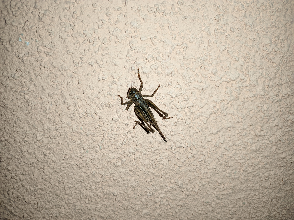 Задержался я сегодня, дела отвлекли от моего ежедневного творчества. Коллективное письмо подписало рекордное количество жильцов нашей местности, поэтому весь день отвлекался. Завтра ещё с утра подпишут и буду отправлять по назначению. Пока во дворе разговаривали вечером, прилетел вот такой красавец огромный, сел на стену дома и подслушивал. Судя по всему, это саранча. Я её поймал за лапки и отправил в розарий, ну съест пару роз, не более того, там еще много.