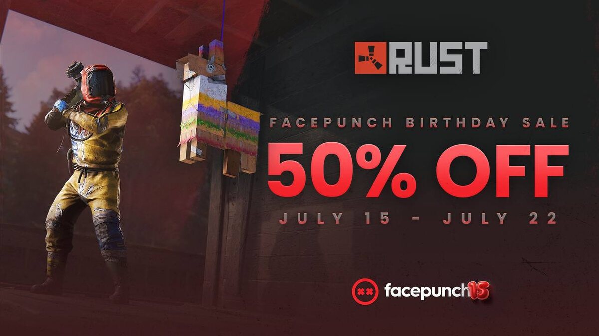 Теперь всю продукцию Facepunch, вы можете приобрести со скидкой в 50%, из-за дня рождения студии!