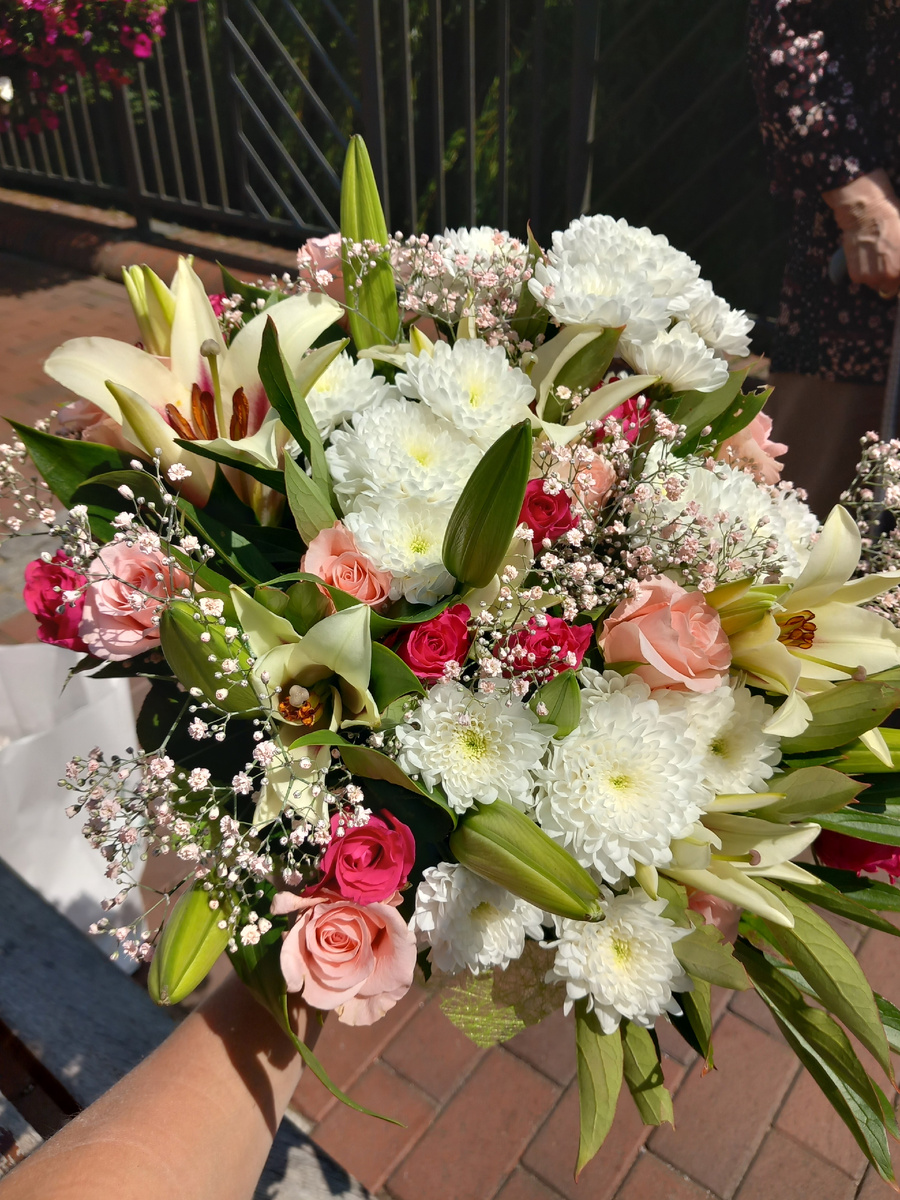 Наконец-то закончились подготовительные занятия к первому классу! Старшим ходить в школу ещё до конца недели. Мне кажется, что я жду каникул, больше, чем дети😅. Приветствую всех, кто заглянул. Будьте счастливы ! Для младшей приготовила с собой в школу фруктовую тарелку и букетик для учительницы, у них был маленький праздник, по поводу окончания подготовительного курса и начала каникул. Цветов вчера купила много. Букет для школы собирала старшая дочь, я же собирала букет для подруги. У неё вчера был день рождения !Вроде это слово и не совсем уместно . Но как ещё назвать дружбу двух женщин? Вот только разница в возрасте у нас 46 лет. Совершенно чужой человек, ставший близких и родным семь лет назад. О ней можно говорить долго, но скажу вкратце : восхищаюсь ей и люблю! Лилии и розы специально выбрала ещё закрытые! В ближайшие дни они будут открываться и букет будет меняться на глазах и радовать именинницу ещё недели две. С утра была у зубного, поставили пломбу. Потом за подарком