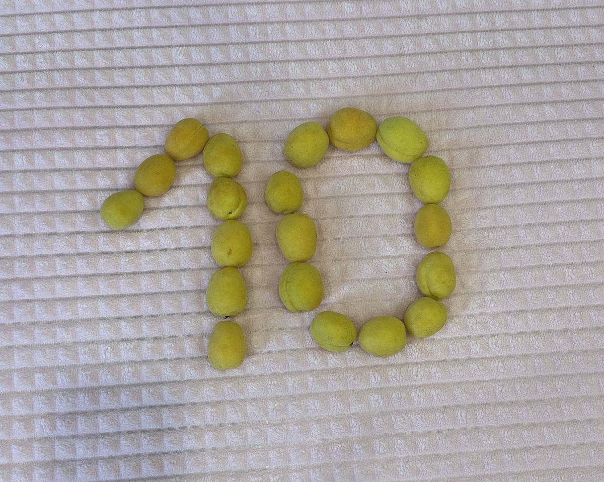 Сегодня доченьке уже 10 месяцев.😱 Мне конечно же как всегда не верится в это. Из умелок это я уже рассказывала, что мы начали ходить, но решила я нарисовать крестики, как это еще говорят развивать ноги, обычно после этого дети начинают хорошо ходить, а у нас случилось наоборот и она теперь как будто боится ходить. Говорят такое может быть. Мне с одной стороны грустно от этого, с другой стороны я понимаю, что когда она начнет ходить будет еще сложнее за ней уследить. Ну и по традиции была фотоссесия с цифрой, и на этот раз она была из абрикосов.