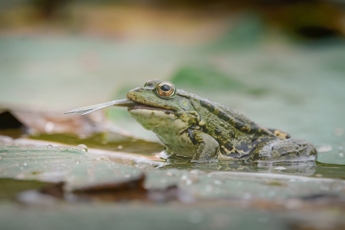 Озерная лягушка поймала и съела рыбу