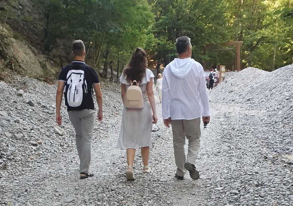 До заветного места предстояло преодолеть расстояние в четыре километра, поэтому посещение обители можно считать поистине паломничеством. Идти надо было практически по бездорожью. А все потому, что в ноябре прошлого года Крым пережил сильнейший шторм, который вызвал мощные селевые потоки в горах, и значительная часть пути до монастыря вдоль реки Альмы была размыта, завалена упавшими с горы вековыми деревьями, а местами и полностью разбита. И хотя к нашему визиту дорога была, насколько это возможно, расчищена – поваленные деревья распилили и растащили в разные стороны, все равно шагать надо было где по покрытию, отдаленно напоминающему асфальт, где по грунтовке, а где и по камням. Однако тех, кто выбрал такой непростой путь, было предостаточно.