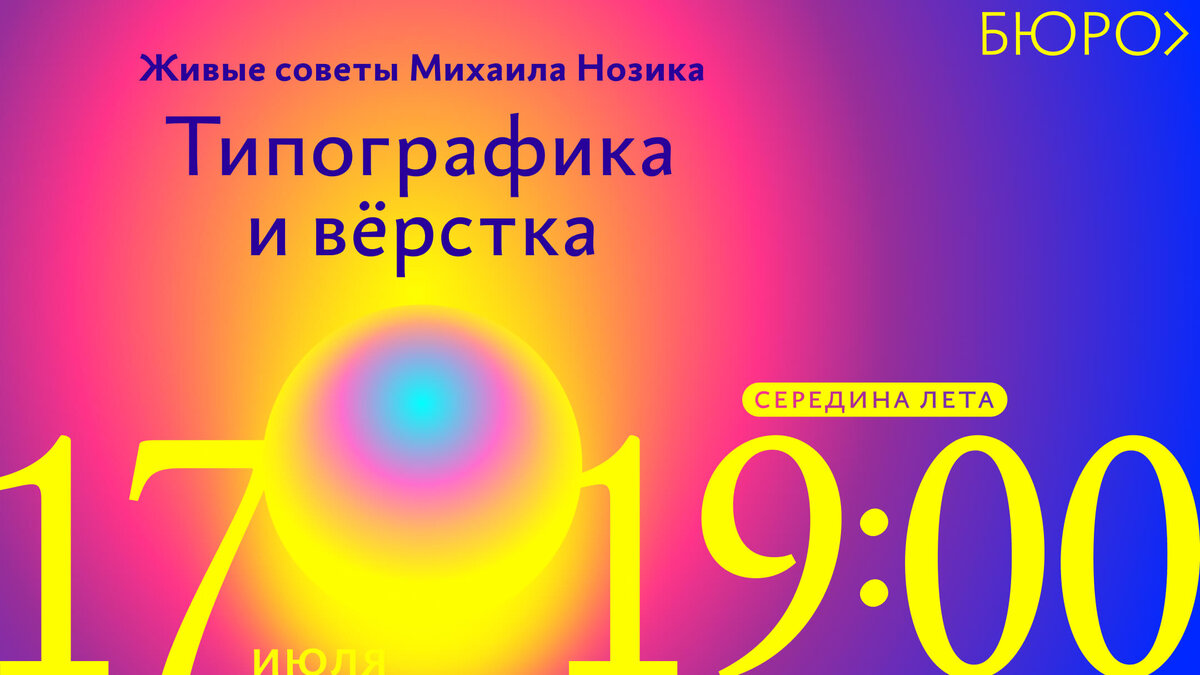 В среду 17 июля в 19:00 мск Миша Нозик раздаст живые советы о типографике и вёрстке. Миша — арт‑директор бюро, соавтор «Советов» и преподаватель дисциплины «Типографика и вёрстка».