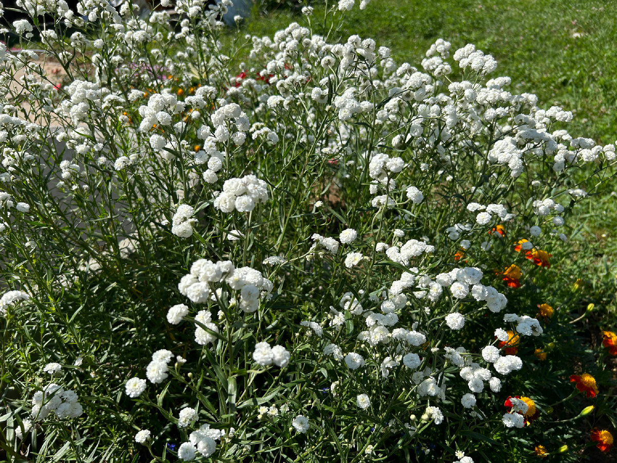 Утонченная красота, универсальность, обилие цветков -это про тысячелистник Жемчужница, ещё его называют "белый жемчуг". Махровые корзинки воздушных соцветий прекрасны в различных цветниках.