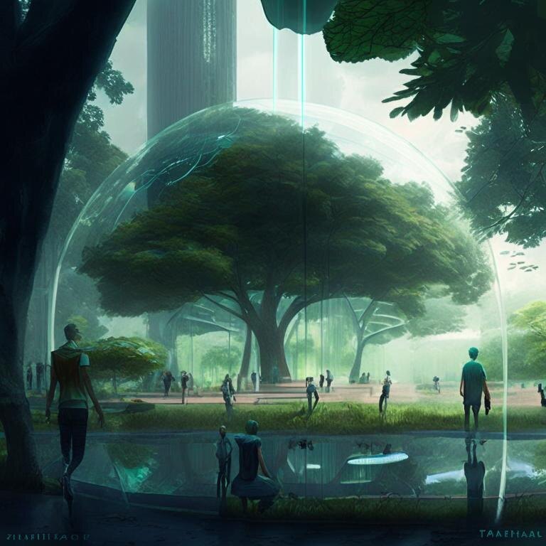 Девушка распахнула широкую дверь, и пара завела внутрь свои флайдрики. Нетейам с удивлением рассматривал открывающийся вид. Он как бы одновременно был дома, на пороге родного леса, но в то же время земные растения кардинально отличались от того, к чему он привык. Оседлав Ф'Рика, он медленно поплыл над тропинкой к началу леса, любуясь деревьями, восхищающие своими необычными формами. Слева и справа от тропинки росла густая трава, на которой в равномерном порядке пышно восседали незнакомые кустарники. Однако что-то начало настораживать Нетейама. Под куполом не было ветра, объясняя неподвижность листьев в густых кронах. Но парк совершенно не источал запах растений. В нем воняло так же, как и на улице. Пылью, затхлостью и пластиком. Догадка вспыхнула у него в голове, когда он соскочил с фладрика возле первого дерева на пути и приложил руку к мертвой поверхности. Вместо реальной зелени, аутентичных запахов растительности и натуральных материалов, перед ним предстал унылый засушенный лес, выполненный из пластмассы, оставляя в душе лишь горький привкус фальши.