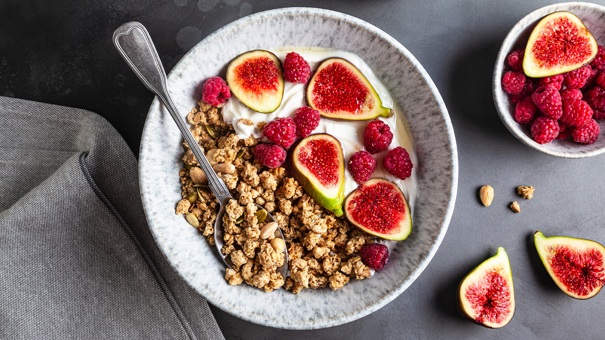 Вариант 7: Овсяные хлопья с йогуртом вместо молока, с черникой, абрикосом и миндальными лепестками.