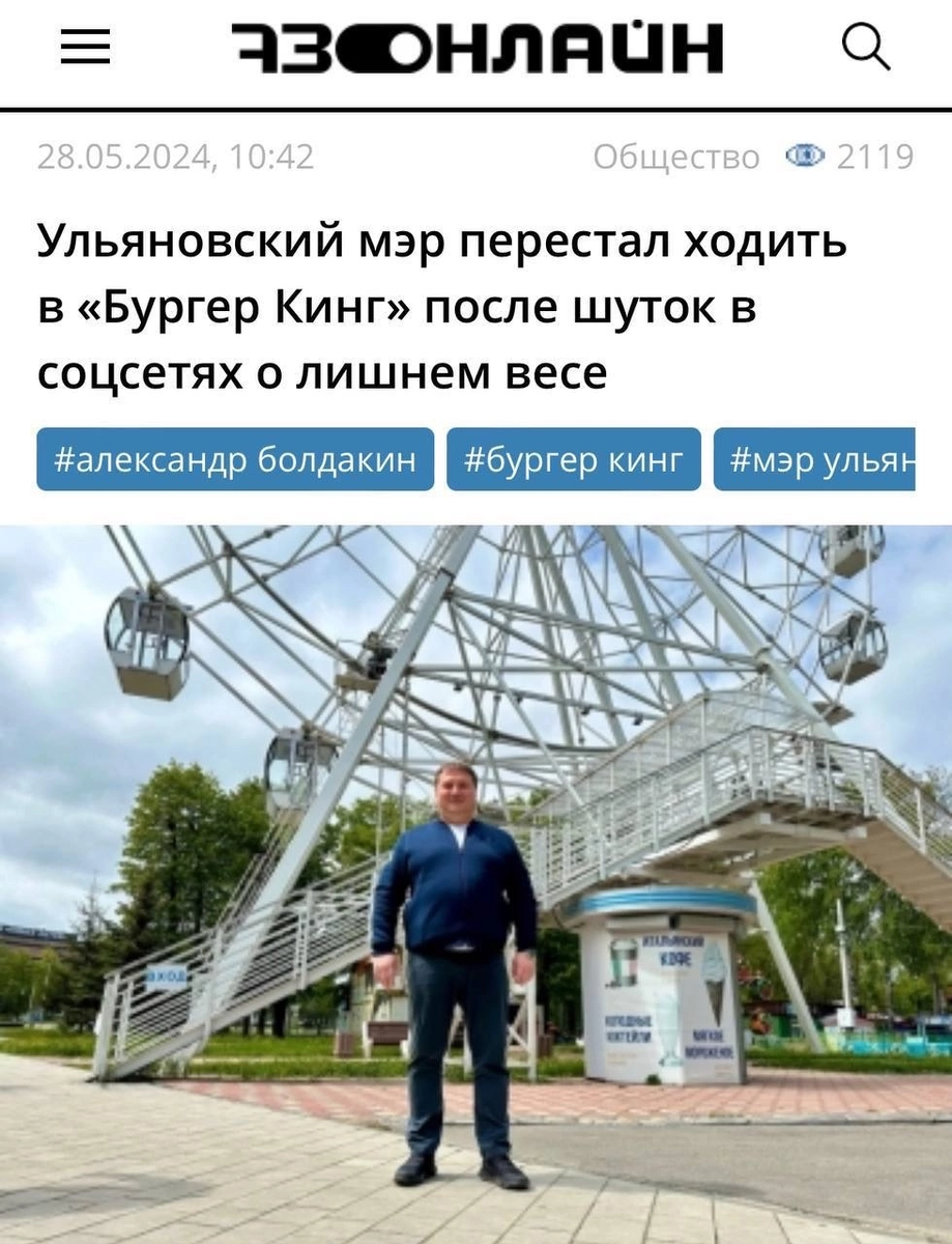 Еще буквально недавно весь рунет пестрил виралочкой про «Диму», которую запустили ребята из Wildberries. Тогда креатив (согласованно или нет, мы уже точно не узнаем) моментально подхватили остальные крупные компании и все это понеслось по инерции в массы. Даже до некоторых госпроектов добило так, что количество детей с именем Дима за эти недели возросло в несколько раз. И вот вроде бы все утихло, отголоски еще пробивают где-то второе дно рунета в надежде словить порцию хайпа, но как-то инфоповод полностью прогорел. Те, кто не успели в этот вагон зайти, могут кусать локти, так как места были крайне дешевыми, кроме фотошопопа и небольших вложений в региональные СМИ, больше ничего и не требовалось. ⚡️ Залеть в последний вагон и запомнится лучше тех, кто начинал Но, это не касается БургерКинг, те всегда славились умением воспользоваться ситуативочкой, особенно, когда повод сам идет в их руки. Так получилось с мэром Ульяновска, амбассадором «БК», которого захейтили в соцсетях за лишний