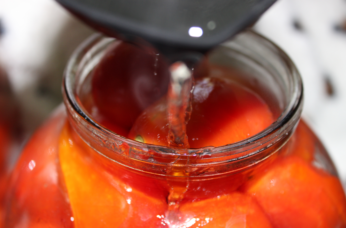 Кислота, содержащаяся в томатах, может выступать естественным консервантом – есть рецепты, где заготовка из помидоров делается вообще без добавления уксуса и при этом хранится в условиях квартирной кладовки. Тем не менее, главную прелесть маринованных закусок – кислинку и пикантность – обеспечивает добавление уксуса. Подробнее о различиях уксусной эссенции и столового уксуса Накормишка писал в предыдущей статье, про огурцы. Ниже разберем ориентировочные – классические пропорции. 1. Подберите помидоры – для маринования лучше всего использовать небольшие плоды с плотной кожицей и мясистой мякотью. 2. Простерилизуйте банки и крышки. 3. Разложите в банки зелень и томаты. 4. Приготовьте рассол: 5. Залейте рассолом банки с помидорами, дайте немного настояться, чтобы помидоры прогрелись. 6. Слейте рассол с банок обратно в кастрюлю, доведите его до кипения. Снова залейте им банки. На предпоследнем этапе добавляется уксус. В самом конце банки закупориваются и убираются на остывание в условиях п