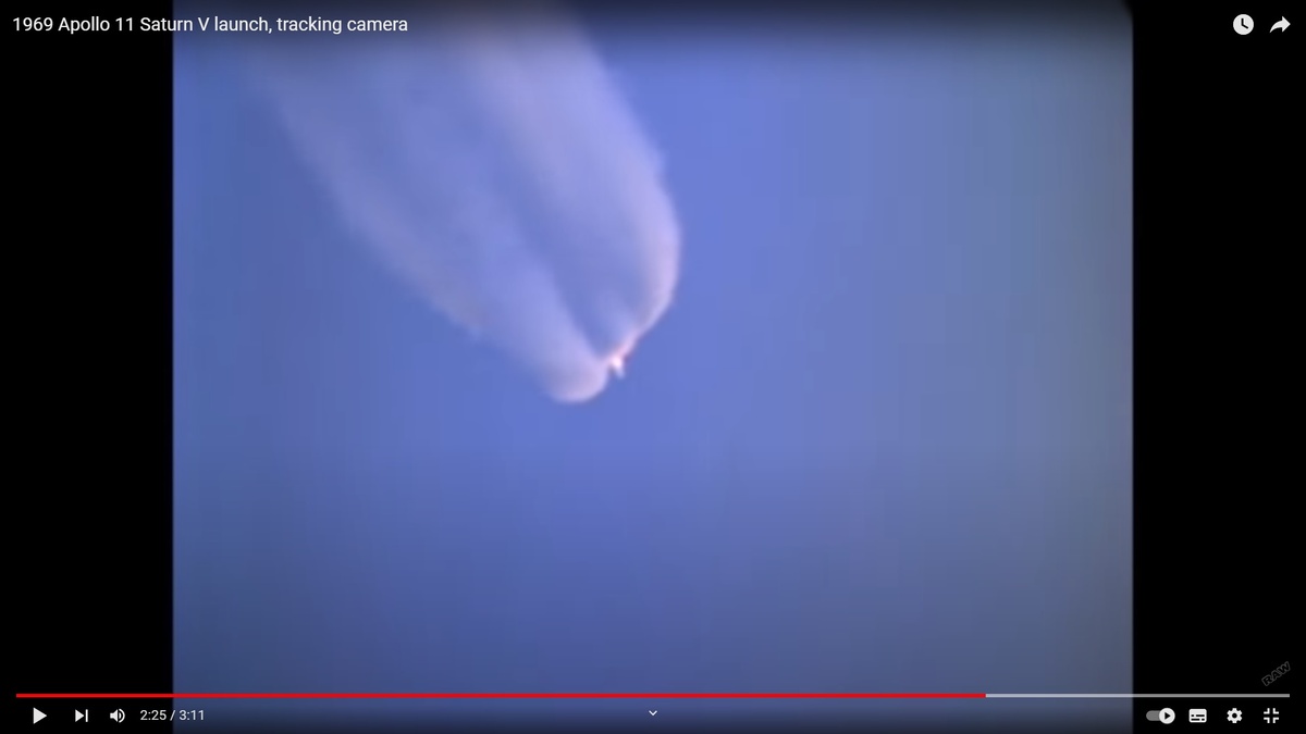 В предшествующей статье, я обратил внимание на то, что отчёты и чертежи первой ступени ракеты-носителя Сатурн-5 не соответствуют документальным кино- и фотоматериалам. Поэтому решил самостоятельно подсчитать количество дренажных отверстий в межбаковом отсеке по доступным кинокадрам и фотографиям. Насчитал их четыре штуки и предположил, что такое количество отверстий может дать простое объяснение четырём белым шлейфам, возникшим за ракетой после погасания пламени.