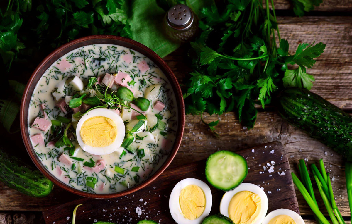Говорят, что люди делятся на два типа: первые заливают окрошку квасом, а вторые предпочитают кефир. Есть и третья группа, которая использует минеральную воду. Но все одинаково любят этот летний освежающий суп. Кстати, 30 мая празднуется День окрошки. Название блюда образовалось от слова «крошить», то есть нарезать мелким кубиком. Практически в каждой российской семье есть свой фирменный рецепт окрошки. В холодный суп добавляют свежие или соленые огурцы, вареную или копченую колбасу и даже морепродукты. Люди придумали множество вариаций окрошки на любой вкус. В классический рецепт входят следующие ингредиенты: · отварной картофель; · вареные яйца; · свежие огурцы; · редиска; · вареная колбаса; · укроп и зеленый лук; · соль; · сметана; · квас. Первым делом мелко нарезают лук и растирают его с солью. Сок, который образуется в результате, придает окрошке яркий вкус и аромат. Затем добавляют все ингредиенты, нарезанные мелким кубиком. В конце всыпают измельченный укроп и все тщате