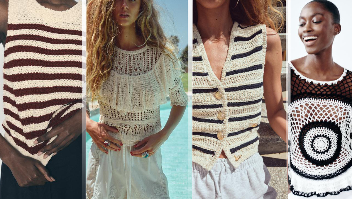Из года в год я делаю подборки трикотажных изделий, которые предлагает нам носить бренд одежды Zara. Каждый сезон у бренда можно вдохновиться интересными конструкциями изделий, сочетанием цветов и узоров. В этом сезоне дизайнеры бренда нас снова радуют. В этой статье я сделала подборку трикотажных изделий от бренда Zara, которые мы можем повторить спицами или крючком. Не забудьте подписаться на канал и поставить лайк этой статье, если она вам понравилась и оказалась полезной. На моем канале вы найдете мастер-классы, полезные статьи и видео с обзором пряжи, инструментов и вязаных изделий. Изделия с элементами кроше стали практически базой летнего гардероба, несмотря на то, что в каждом сезоне модные аналитики предрекают, что количество ажурных изделий в следующем сезоне будет меньше. Прогнозы не оправдываются. Zara доказывает это используя чрезмерное количество ажурных полотен в одном изделии. Разве это не красиво? Морская тема актуальна каждое лето. Пожалуй, характерным атрибутом мор