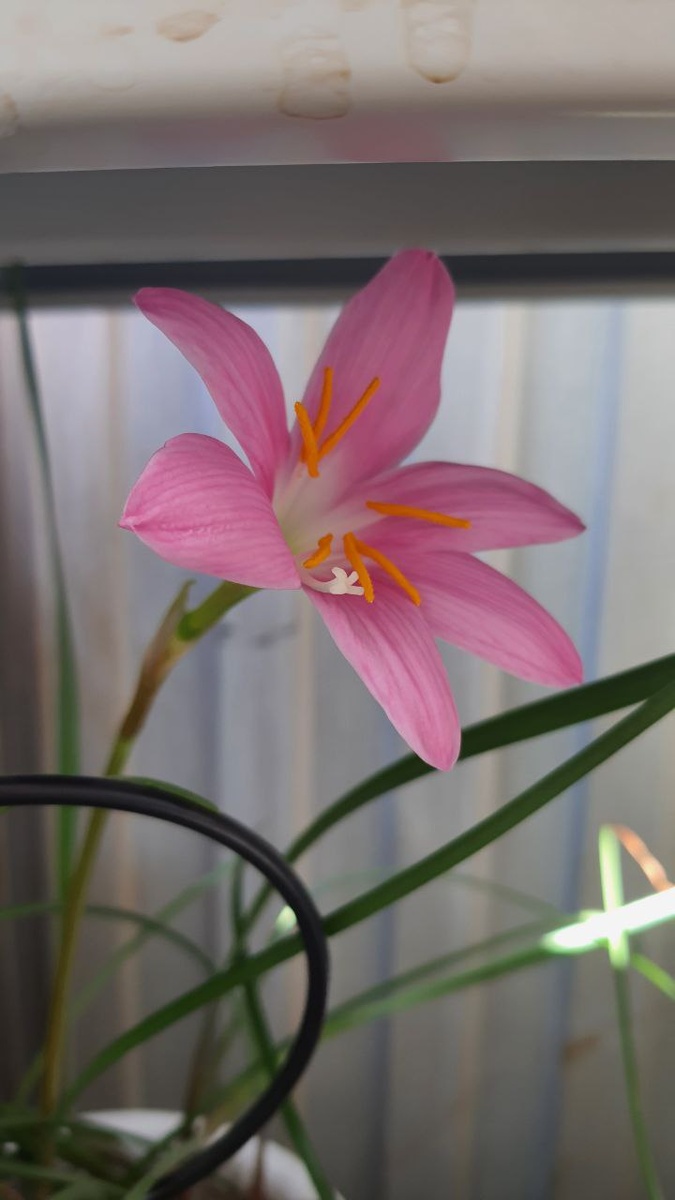 Зефирантис первое луковичное растение, которое у меня зацвело! И это вышло случайно. В наследство мне достались несколько растений и зефирантис был одним из них. Ну кааак. Это было два горшка с засохшими странными кочерыжками, торчащими из земли. Мама сказала поливать и я поливала. Примерно... не помню, может с марта? Или раньше. Сначала у него начали идти листья. Тонкие, хилые, одно название. Потом вроде как пришла весна, стало побольше солнышка и листья окрепли. Но только листья! Я вытащила его на балкон в надежде, что ему станет хорошо и зацветет. Ну, листья множились. В какой-то момент я убрала его с солнца на полку ниже, где тоже было довольно светло, но без прямых лучей. И к моему удивлению он зацвел! У мамы тоже растет, но белый и цветет уже несколько недель. Я прочитала, что вообще-то он и должен начинать цвести в середине лета. Но! в другом источнике пишут, что цветет с весны. Тут кстати возникает опять проблема достоверности информации об уходе за растениями. Где-то пишут