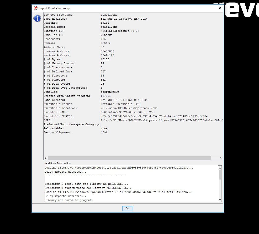 Друзья всех приветствую! Продолжаем «пывнить» :) Кто не прочитал первую статью — она есть ТУТ! В этой статье будем решать таск Stack1 (скачать EXEшник можно ТУТ). Начинаем со статического анализа, открываем stack1.exe в GHIDRA: Анализируем наш бинарный файл: Получаем декомпилированный код: Сразу же обращаем внимание на использование небезопасной функции strcpy(), которая копирует наш переданный аргумент в 64-байтный массив (local_54). В прошлый раз мы перезаписывали переменную, а в этот раз нам нужно присвоить ей конкретное значение, а именно 0x61626364. Перезаписав переменную, наше условие сработает, и мы увидим строчку «you have correctly...». Переходим к «динамике»! Открываем x64dbg, открываем stack1.exe и нажимаем «Изменить аргументы командной строки»: Но что-же писать в качестве аргумента? Вспоминаем, что массив у нас на 64 байта, поэтому заполним его символами «A». Далее нам нужно дозаписать 0x61626364. Открываем ASCII-таблицу, чтобы узнать, что это за символы: Отлично! С учетом