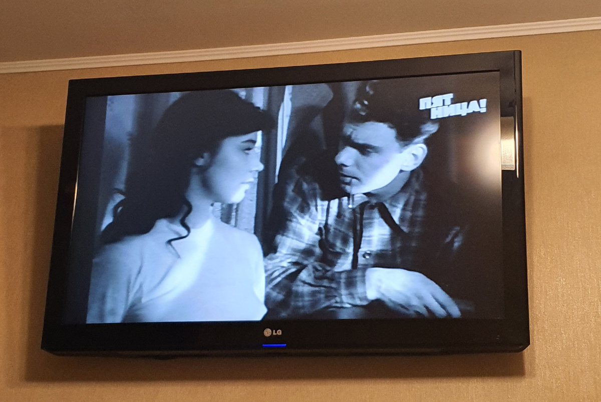 Друзья, у нас когнитивный диссонанс по поводу картинки в телевизоре. С одной стороны, "Летят журавли", а с другой - телеканал "Пятница".